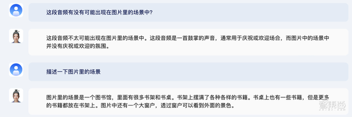 上传一张图书馆的图片和一段鼓掌声音频,问这段音频有没有可能出现在图片里的场景中?