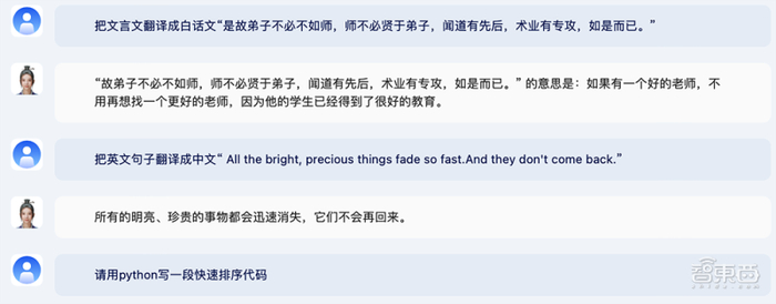 在语言能力方面,和多数大型语言模型一样,紫东太初2.0支持中文问答、逻辑推理、文本摘要、文本续写、文本创作、标题生成、语法分析、机器翻译等等。
