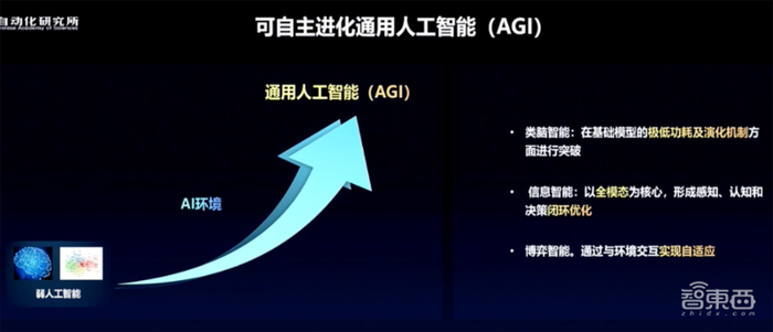 据徐波分享,通过可自主进化通用人工智能有三条路径:类脑智能、信息智能、博弈智能。