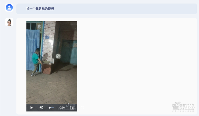 比如让它找一个踢足球的视频。