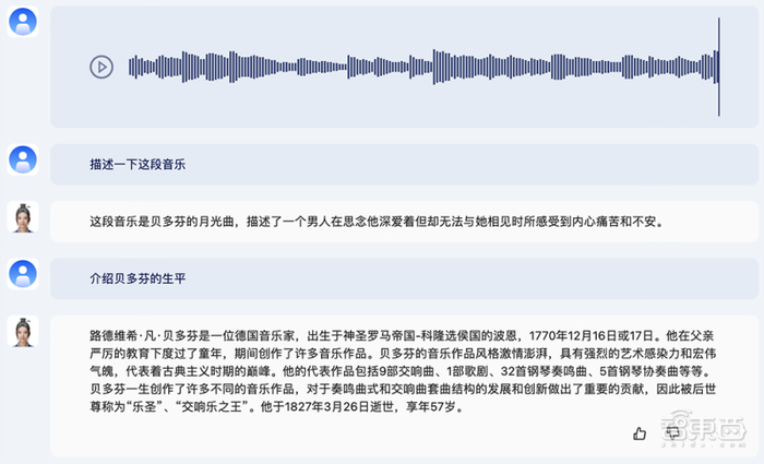 你还可以询问这段音乐是用什么乐器演奏的,让紫东太初2.0根据这段音乐作诗,或者追问贝多芬的生平是怎样的。