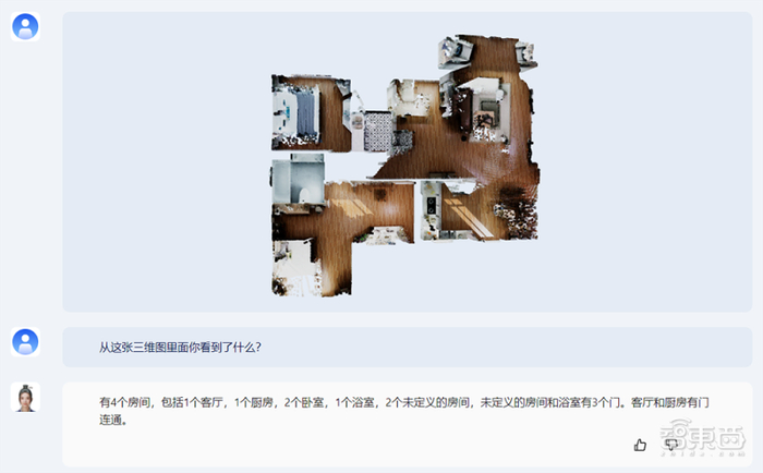 此外,紫东太初2.0具备基于点云数据的3D场景理解和物体感知能力。你可以让它描述从这张三维图里看到了什么信息。