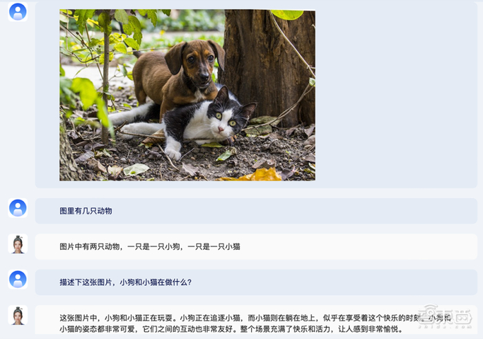 比如问“图里有几只动物”、“小狗和小猫在做什么”,紫东太初2.0给出了具体的描述。