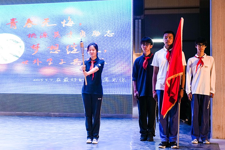2015年5月7日,世外中学全体八年级同学迎来了14岁生日活动。今天,我们要告别懵懂的童年,敲响青春的大门。