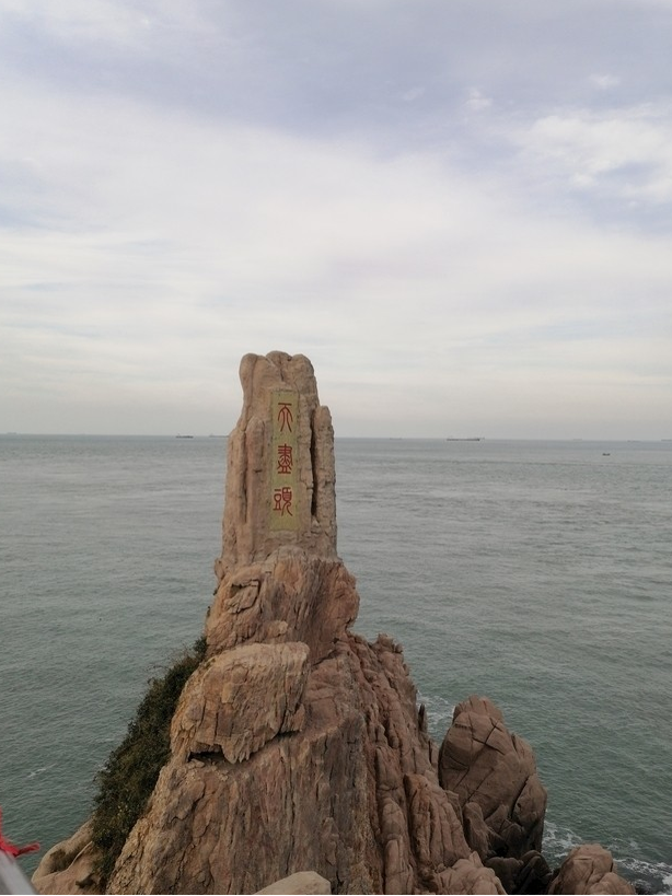 公元前219年,秦始皇第一次来这里时抚须感叹:“天之尽头!”随行的大臣李斯便写了“天尽头”三个篆字,刻石而立。人们还把这三个字刻在海中孤突如剑的石峰上,让这里有了一个引人入胜的地名。