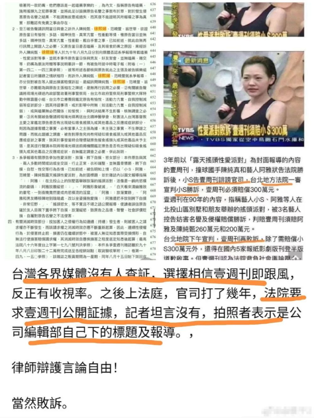 因为周刊没有实质证据支撑自己的耸动报道,并且这个报道影响力极大,几乎让阿雅的事业毁于一旦。