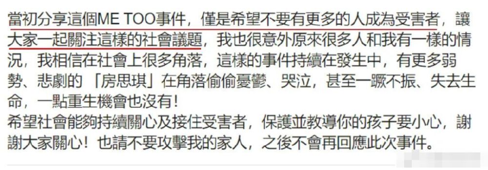 黄子佼事件的受害者说,她鼓起勇气的发声,是希望大家更多关注受害者,希望更少的人成为受害者。