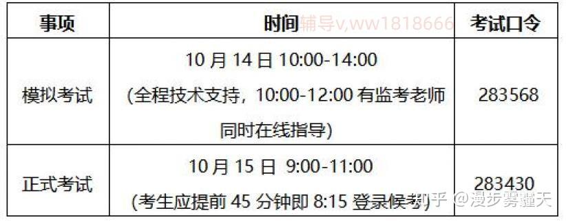 为确保考生顺利参考,将在正式考试前一天,即10月14日统一组织全体考生进行模拟考试,帮助考生熟悉网考系统,了解网考要求,测试网络和软硬件环境,完整体验在线答题流程及方式。模拟考试期间,全程技术支持,监考老师同时在线指导。