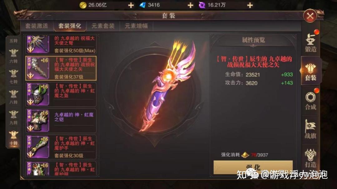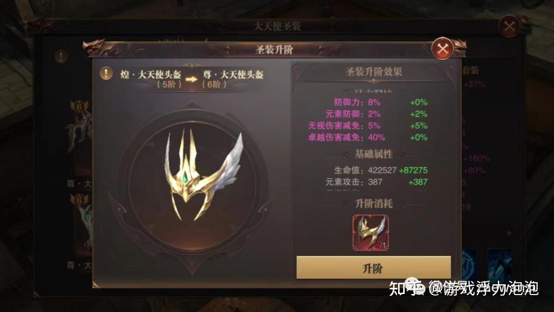 自身等级每升一转,都能对自身的大天使套装进行进阶升级,提高海量的属性: