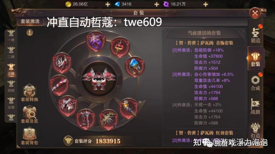 由于套装是在神装的基础上打造的,所以在角色达到3转之后,我们才能对自身的神装进行套装的激活。如下图所示: