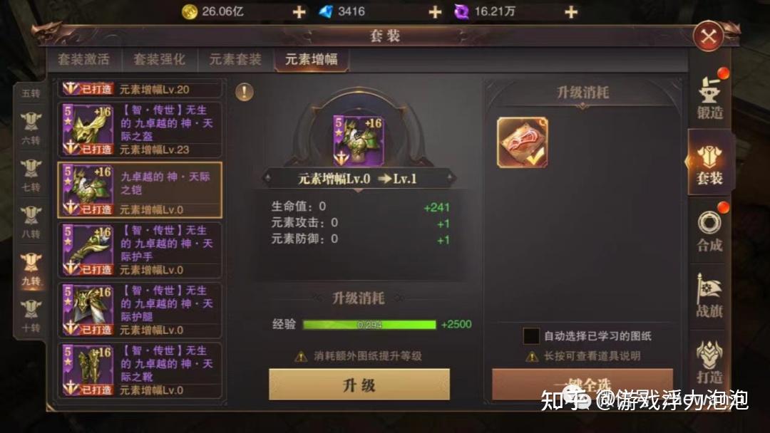 有了元素套装之后,还能使用多余的套装图纸对套装进行强化,如下所示: