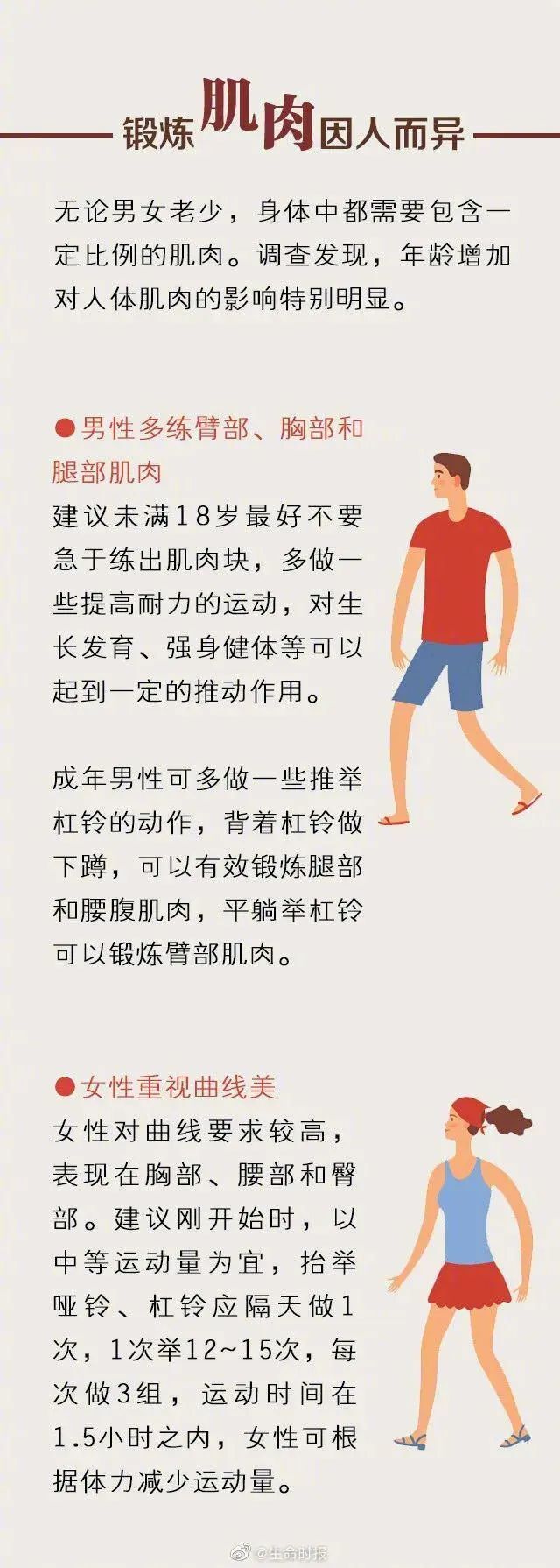 随着年龄增长,肌肉会不断流失,这时候就需要通过力量训练让肌肉变得健壮。丰富的肌肉群不仅能保护骨骼,还能降低早亡风险。不同群体的人,应该锻炼身体哪些部位的肌肉?今天,一起来科学地学习↓