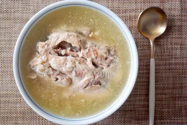 鸡肉和里面的糯米已经煮得软烂,完全吸收了药材和香料的味道。汤头鲜香,生病的时候喝上一大碗,内心非常温暖。