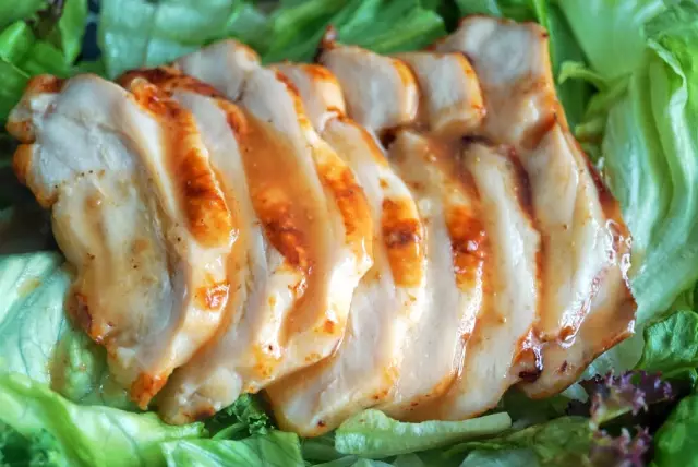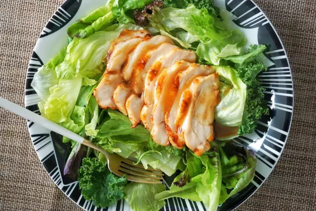 很犯规地浇上了柚子醋沙拉酱,偶尔也要小释放下自我。关键词「东字 芝麻柚子醋」关键词「优形 鸡胸肉片」。试过不少,这家算推荐,电烤鸡口味比蒸鸡好吃,当然热量也高那么一点点。