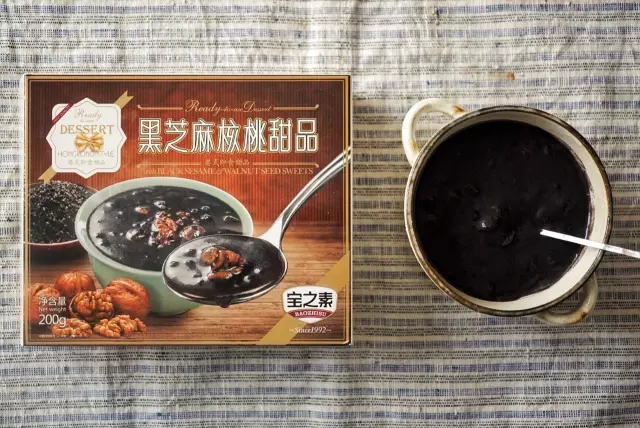 关键词「宝之素 黑芝麻核桃甜品」。这个牌子专做即食甜品,打开就能吃,夏天会一直在冰箱里囤着,做下午茶也很棒。