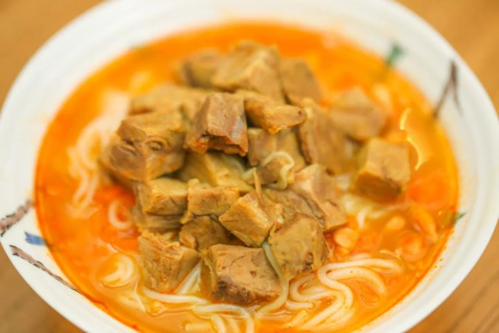 汤底是牛骨原汤,没有很重的调料味。牛肉米线,买的是「 徐州开心米线 」。店家介绍是当天新鲜现做米线,当天邮寄发货,保质期不是很长,一次别囤太多。