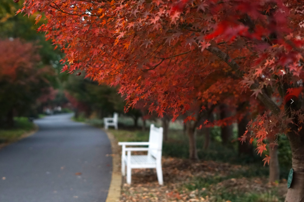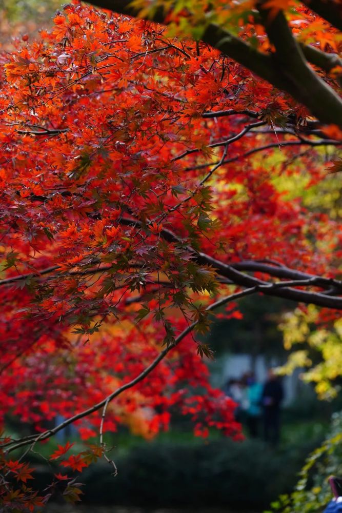 枫叶主要集中在秋景园,园内植有20多个秋色叶树种,观赏期将持续到12月25日。