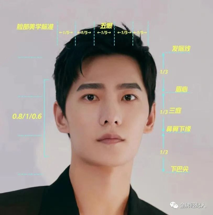 如果要对颜值评选给个默认标准,那就是三庭五眼这一黄金法则,五官比例与脸型完美搭配,才能打造出雕塑般的容貌。在颜值大赛中,粉丝往往喜欢拿正主的正脸图,然后划线做分割,以此证明自家偶像的完美。