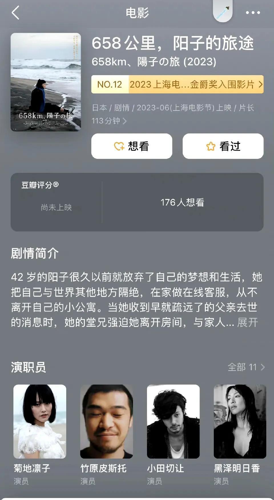 另悉,电影《658公里,阳子之旅》会在今年7月下旬上映。它在上海国际电影节上的这次首映,极有可能开启它好口碑的开端,不妨期待一下后续上映后更多影迷的反应。