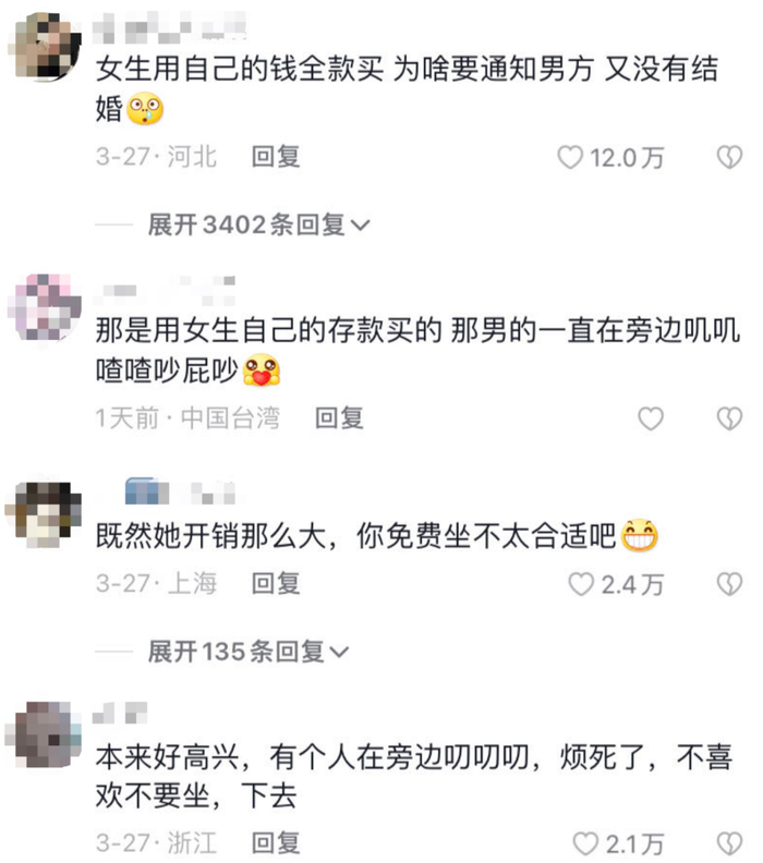 女生其实挺无语的,她当然明白男友的意思,觉得自己“乱花钱”了。