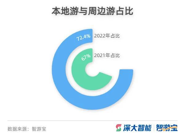 根据文化和旅游部要求,至2022年3月15日,暂停旅行社及在线旅游企业经营进出陆地边境口岸城市(与香港、澳门有口岸相连的除外)的跨省团队旅游及“机票+酒店”业务。各省严格执行跨省旅游经营活动管理“熔断”机制,旅行社团预约人次占比同比去年春节再次下降,智游宝数据显示,春节期间,旅行社团队预约仅占比为4%,同比下降超过50%,本地游、周边游成为春节假期的主要出游方式,占比超过超72%。