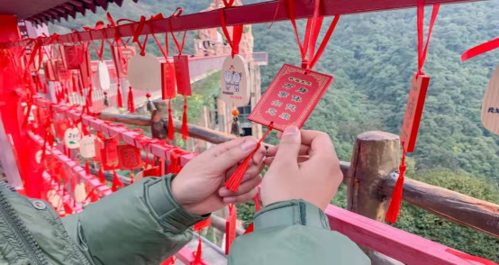 春节期间,韶关智途平台开展云门山新春祈福节活动,游客在景区扫码购票后参加一系列活动,游客集齐五福打卡点的打卡照片或视频后可获取精美礼品1份。活动内容深受游客喜爱,在云山秀顶挂上愿望牌、系上祈福带,祝福2022年顺顺利利。