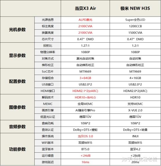 新款极米NEW H3S外观和之间的极米H5、H6非常相似,实际参数到底如何这次我们一起研究一下;之前经常有人将极米H3S和当贝X3 Air进行对比去做选择,这次我们也会将极米NEW H3S去对比当贝X3 Air,看看哪款配置更强,更适合购买。