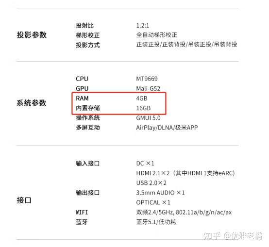 极米NEW H3S和当贝X3 Air的处理器依旧是MT9669,处理器都用的是高端配置,不过让人没想到的使,这次极米NEW H3S的内存搭配的有点小,内存竟然只有4+16GB,当贝X3 Air的内存都有3+64GB了;一般来说16GB只会用在入门投影上,64GB才是中高端投影必备的配置,这么看这款极米NEW H3S还没有上一代H3S配置好?