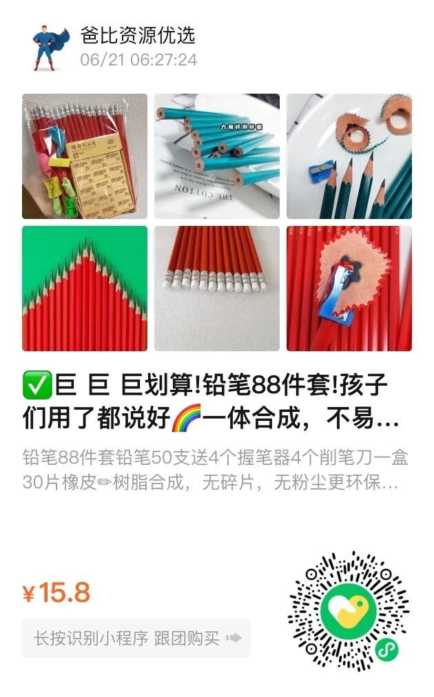5、?巨 巨 巨划算!铅笔88件套!孩子们用了都说好??一体合成,不易断芯?好削?不脏手?安全??对的,没有看错!50支铅笔+?30橡皮—加送4个握笔器和4个削笔刀,给孩子准备的开学福利???