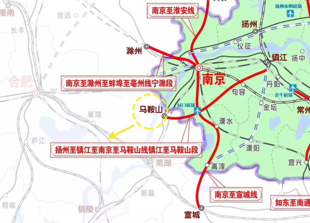 2021年11月,扬州经镇江南京至马鞍山铁路镇江至马鞍山段(安徽段)环境影响评价第一次公示。计划十四五期间实现开工。