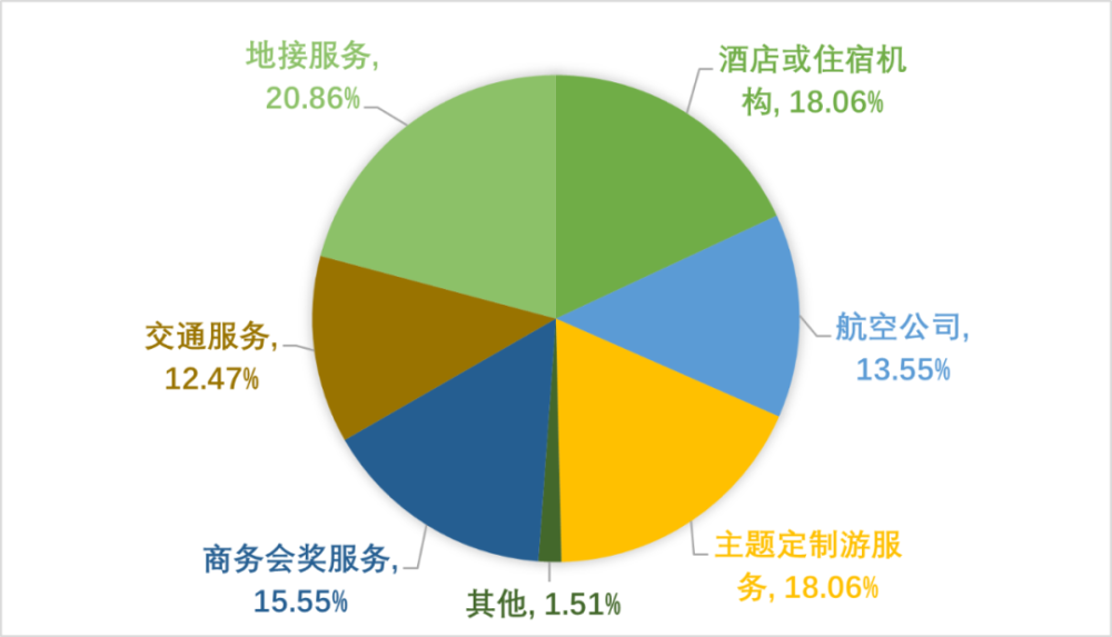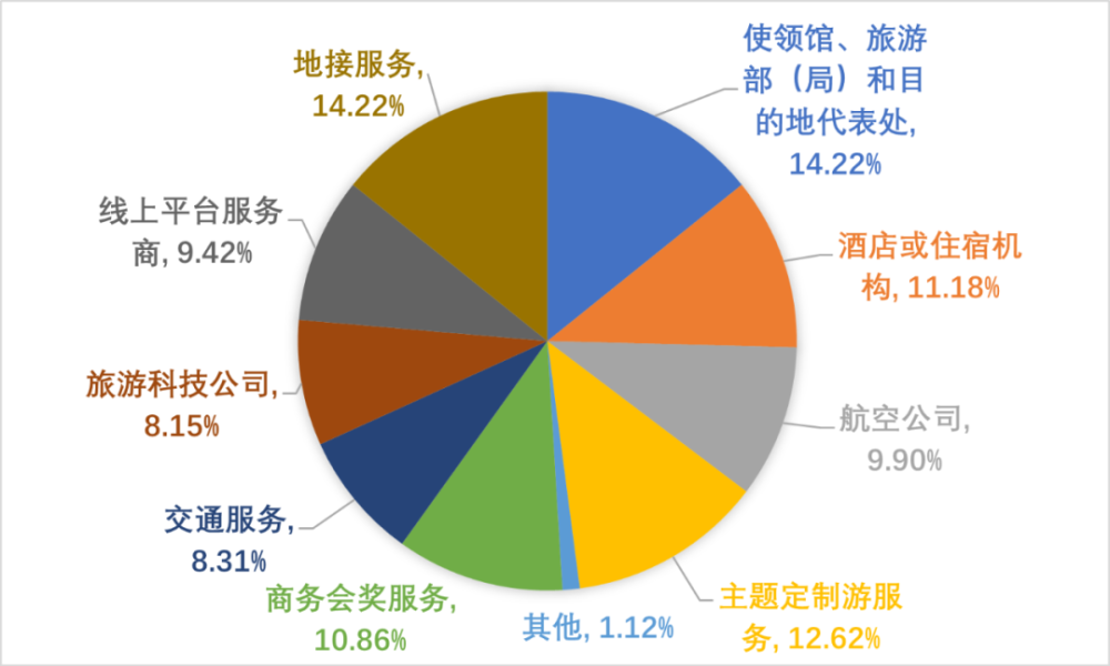 调研显示,中国旅游运营商们希望了解的这些目的地的资源商类型中,20.86%的中国旅游运营商选择地接服务,其他类型选择分别是:主题定制游服务18.06%、酒店或住宿机构18.06%、商务会奖服务15.55%、航空公司13.55%、交通服务12.47%。