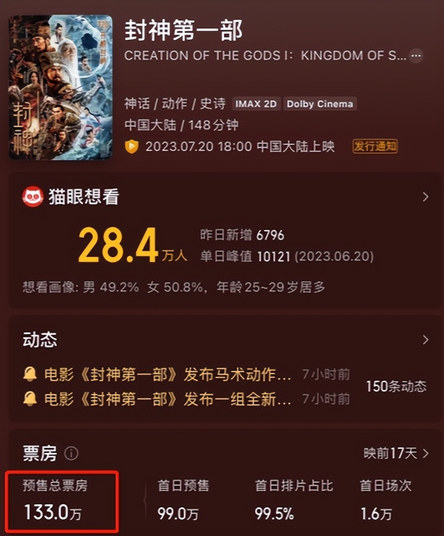 眼下《封神第一部》进入预售阶段,从数据来看,这部电影扑街的可能性还是比较大的,果然观众的眼睛是雪亮的。