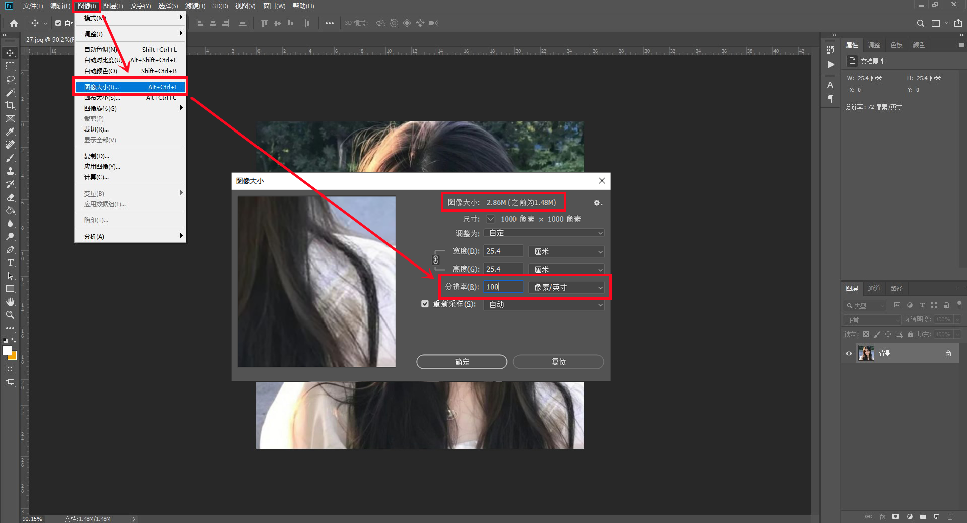 图片像素越大,图片幅面尺寸也会越大,占用空间多,存储空间也就变大,所以我们就可以根据这一逻辑,将图片像素直接往大了修改。