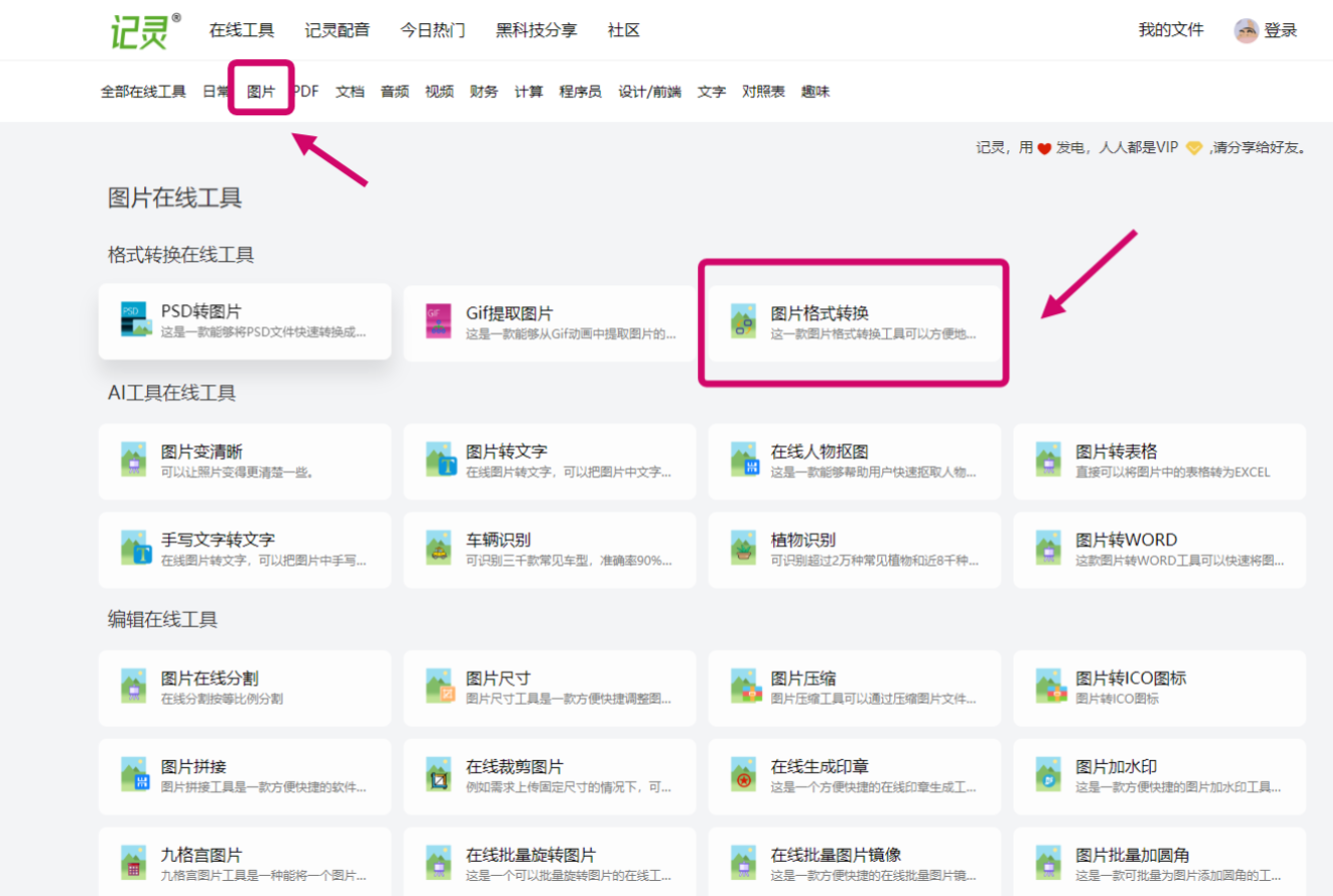 在常用工具中,找到“图片格式转换”功能