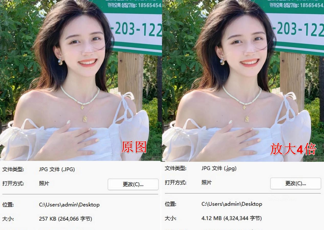 它并不是我们理解的放大尺寸,而是能够将图片放大一定的倍数,同时还保持清晰的画质,最主要的是图片处理之后,放大来看也都没有模糊的锯齿状~