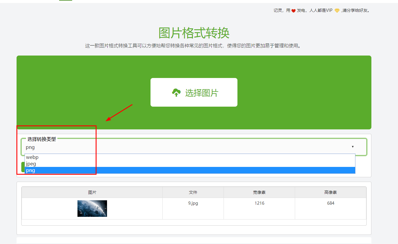在这里上传需要更换格式的图片文件,一般PNG文件就会比JPG文件大,所以想要增大文件可以选择JPG转换PNG文件