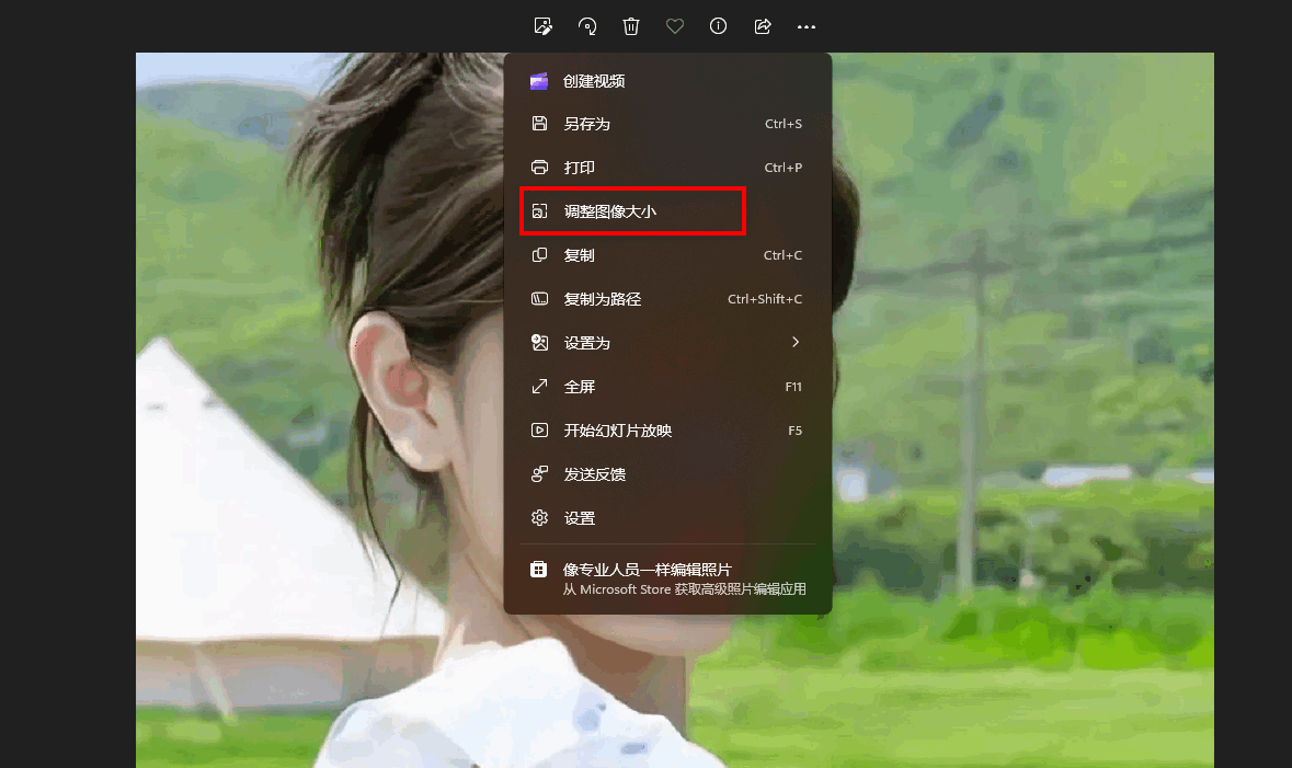 将照片工具作为打开方式,双击点击图片在设置中,找到“调整图像大小”选项
