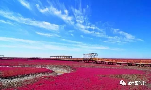 渤海湾东北部,地处辽河三角洲湿地内,有一片红色的海滩,每年10月,它仿佛被点燃了似的,一片火红,一直到秋天结束。