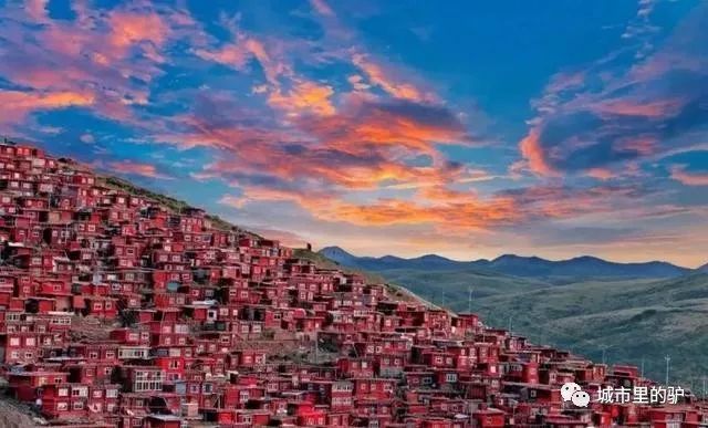 山谷里布满了密密麻麻的红色藏式小木屋,如红色的海洋,燃烧着信仰的力量。在色达时,感觉时间很漫长;在色达,信仰是一种力量。在色达,只一眼就是永恒。