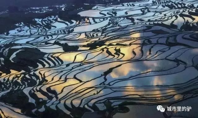 站在田垄间,低头一汪碧水,抬头一片蓝天,青山秀丽,每块梯田中都是一个不同的世界。