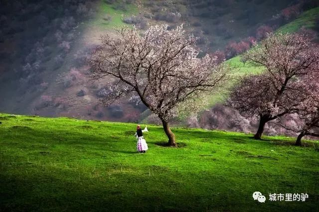 杏树林绵延十几公里,或雪白或粉红,几公里之外,都能闻到清新的香味,所谓迷人的仙境,大概就是春天伊犁的样子吧。