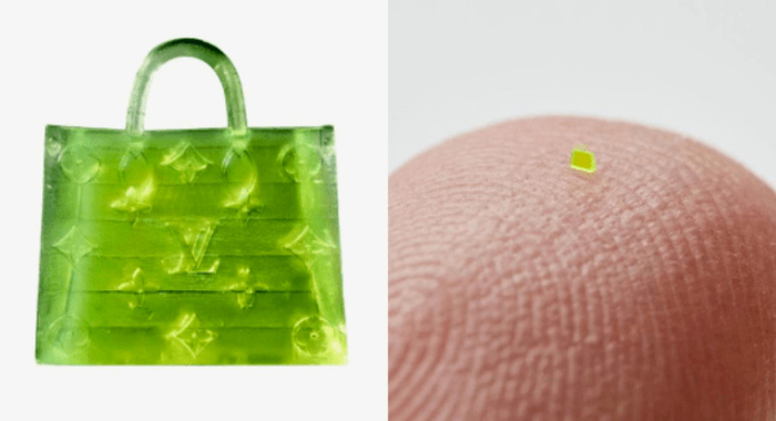 6月30日消息,近日,美国纽约布鲁克林艺术团体MSCHF创作出一款“比一粒盐还小”的微型手提包(657 x 222 x 700微米),在线上拍卖会上以63750美元(约合人民币46.2万元)的价格售出。在显微镜下,你会看到,这款荧光绿的包包中间有一个“巨大”的LV标志。但这并不是LV品牌的包包,而是MSCHF仿制的版本。