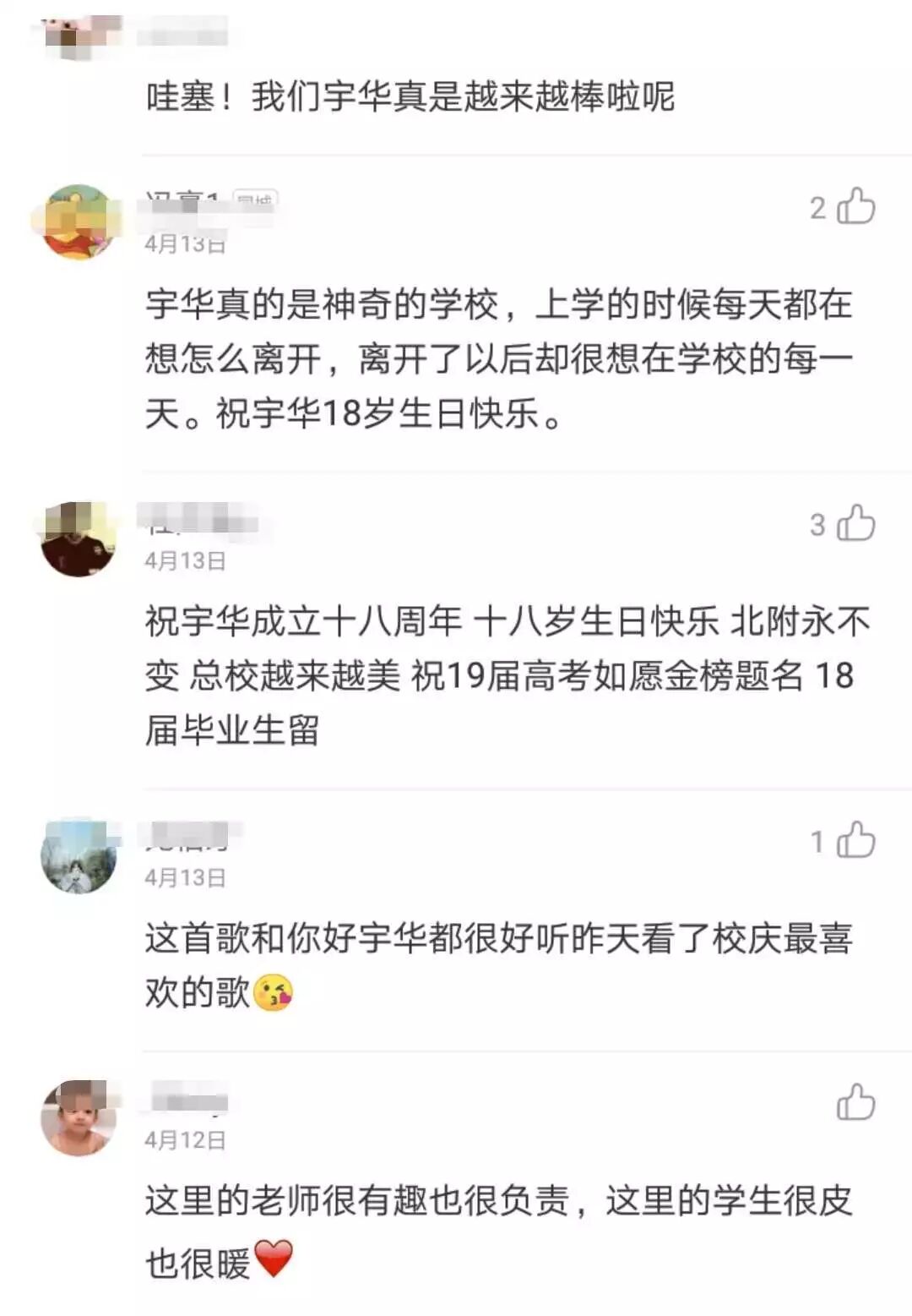 此歌曲一上线,便好评如潮,QQ音乐、网易云音乐、酷狗音乐等各大音乐软件评论区汇集来自四面八方的赞美与祝福,让我们一起来听听宇华校友的心声吧!