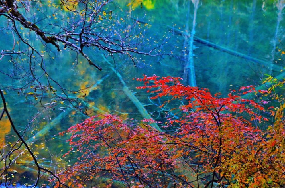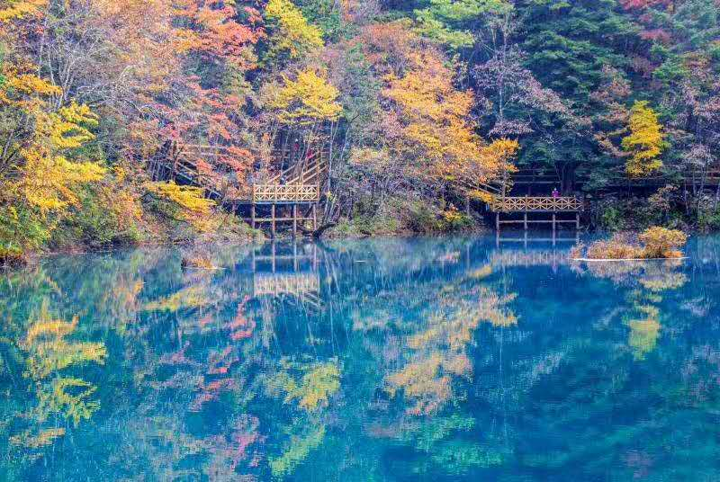 “在九寨,所有碧波静海,皆不可泛舟荡漾,可光是几眼,就抵山河万色。”所以才有人说,九寨水美若有10分,其中9分都叫那秋天拿了去~