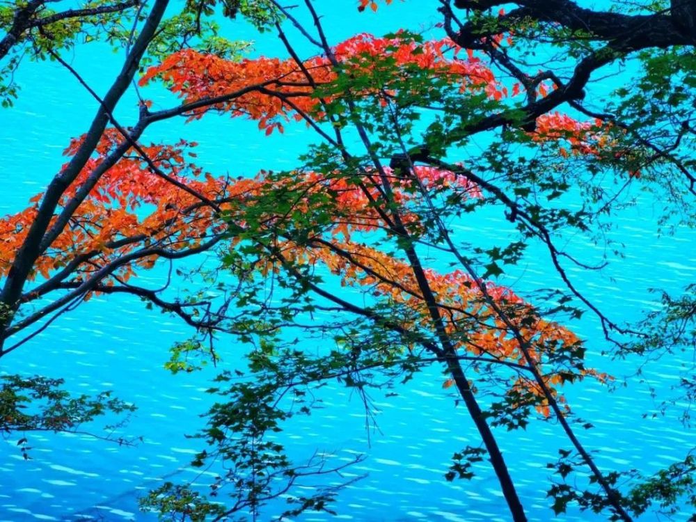 最开始,是一缕秋风循着水色而至,向林海泼洒了斑斓千叶万树,沿沟底直攀山巅,满沟呼应刹那间,整个山林雀跃起来~