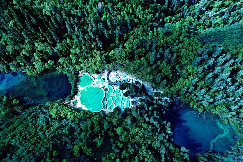 到达五彩池后一路向下,还有争艳彩池,呈梯田状的彩池,一眼望去碧蓝映天,简直就是画家笔下的绝世名画!