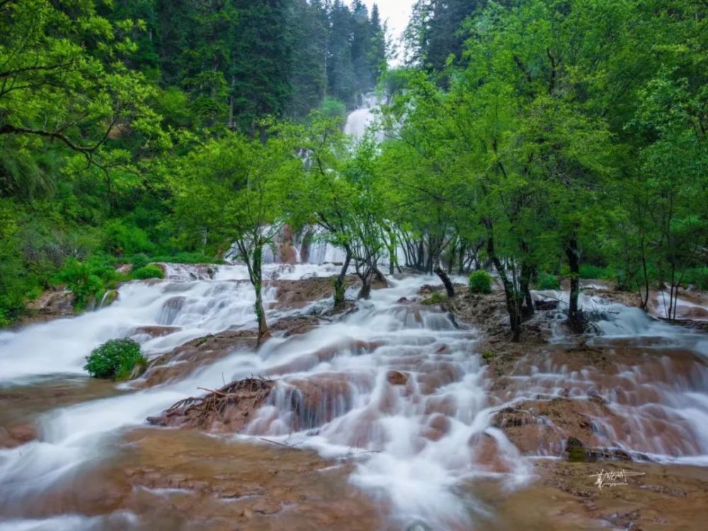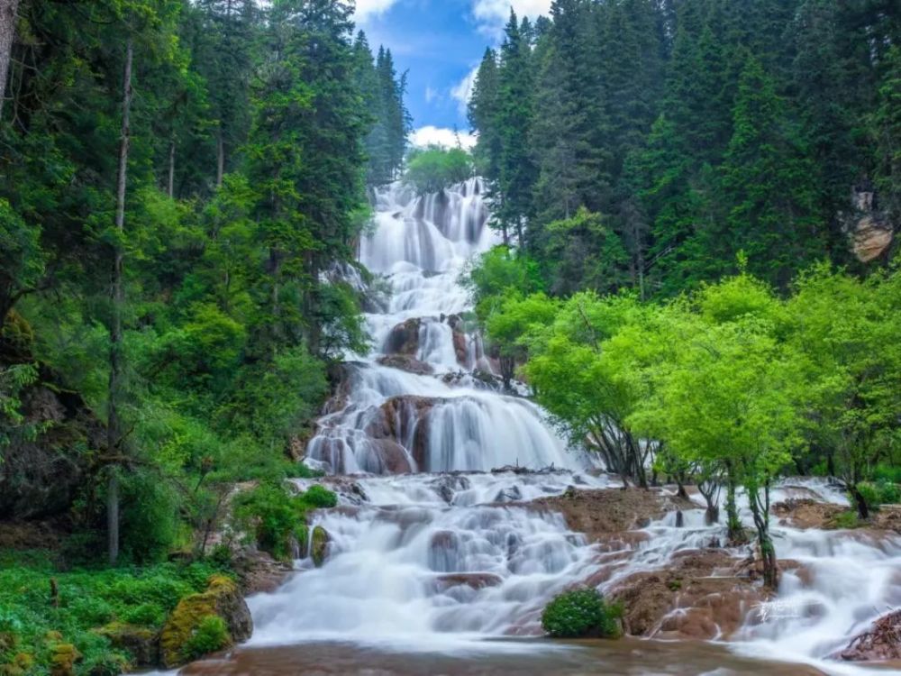 『扎嘎瀑布』距离黄龙景区60公里,牟尼沟景区内的扎嘎瀑布,是我国落差最大的钙华瀑布!