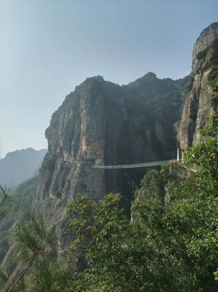 灵岩景区是雁荡山最小巧的景点。灵岩山下分2条路,1条去小龙湫,1条爬山路。推荐直接走爬山路线,这是一条沿着山壁修建的阶梯,爬到半山腰也可以清楚看到小龙湫。上午10点半和下午3点半都有村民表演飞渡。