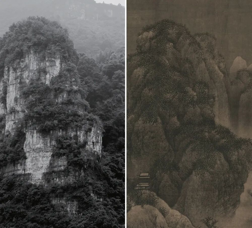 左展旗右天柱后屏霞数千仞神工鬼斧灵岩胜景叹无双。