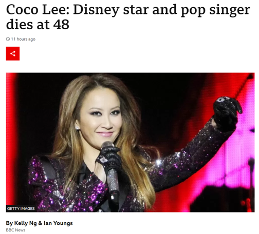 CNN在7月6日发布两则新闻,在“2023年我们失去的人”一文中特别报道了香港流行歌手李玟因患抑郁症去世的消息。另以标题“香港标志性歌手和《花木兰》配音演员CoCoLee去世,享年48岁”专门发文。